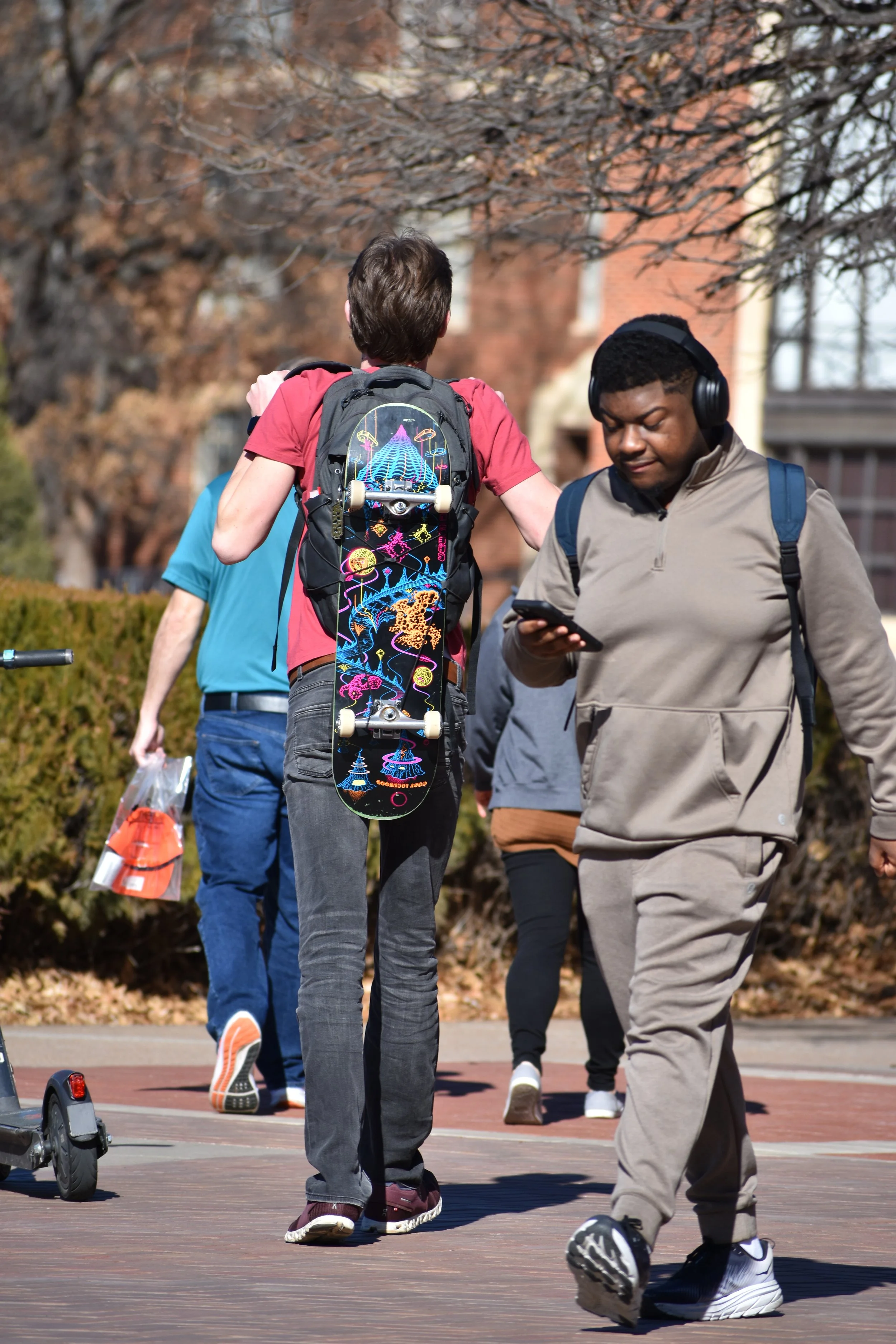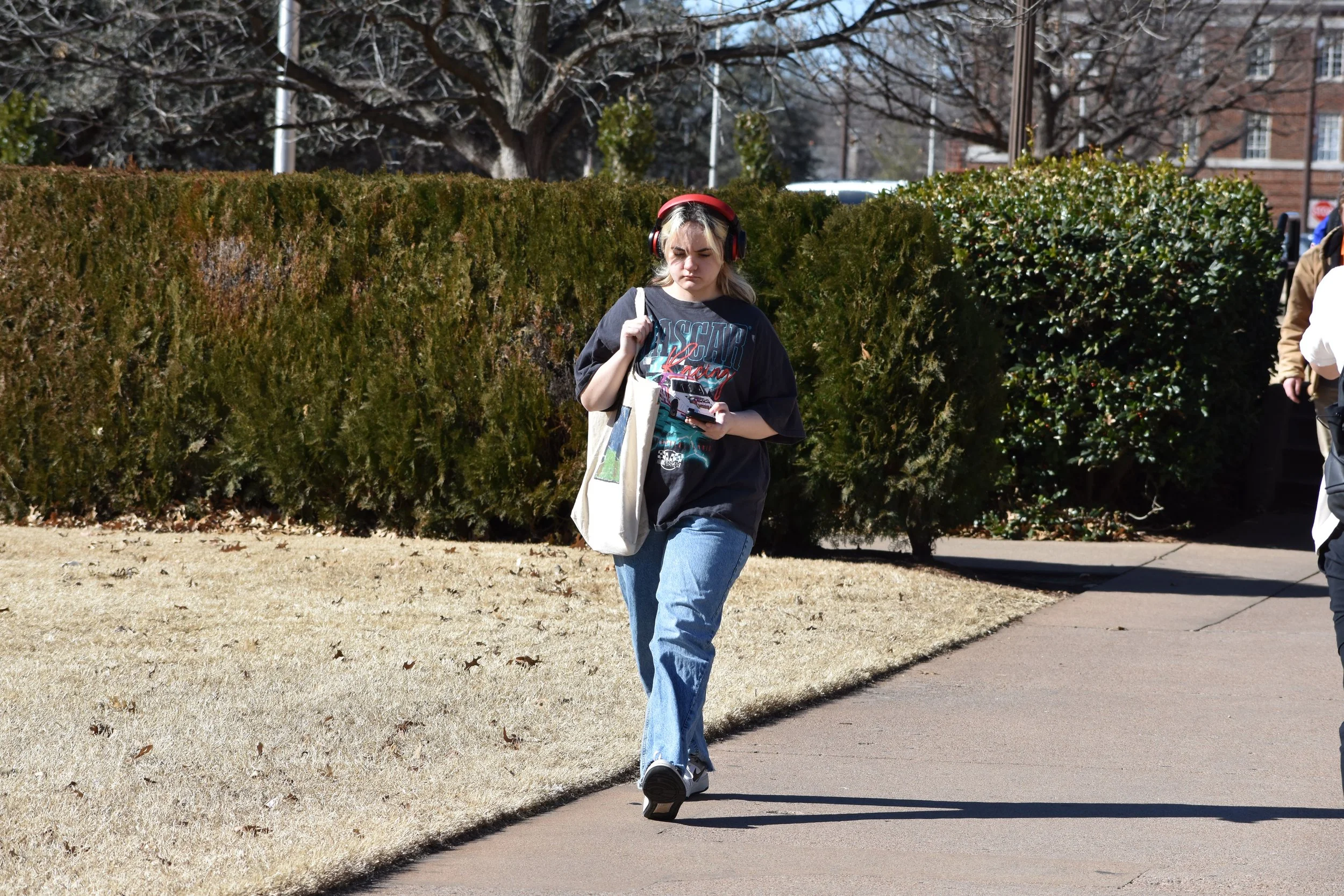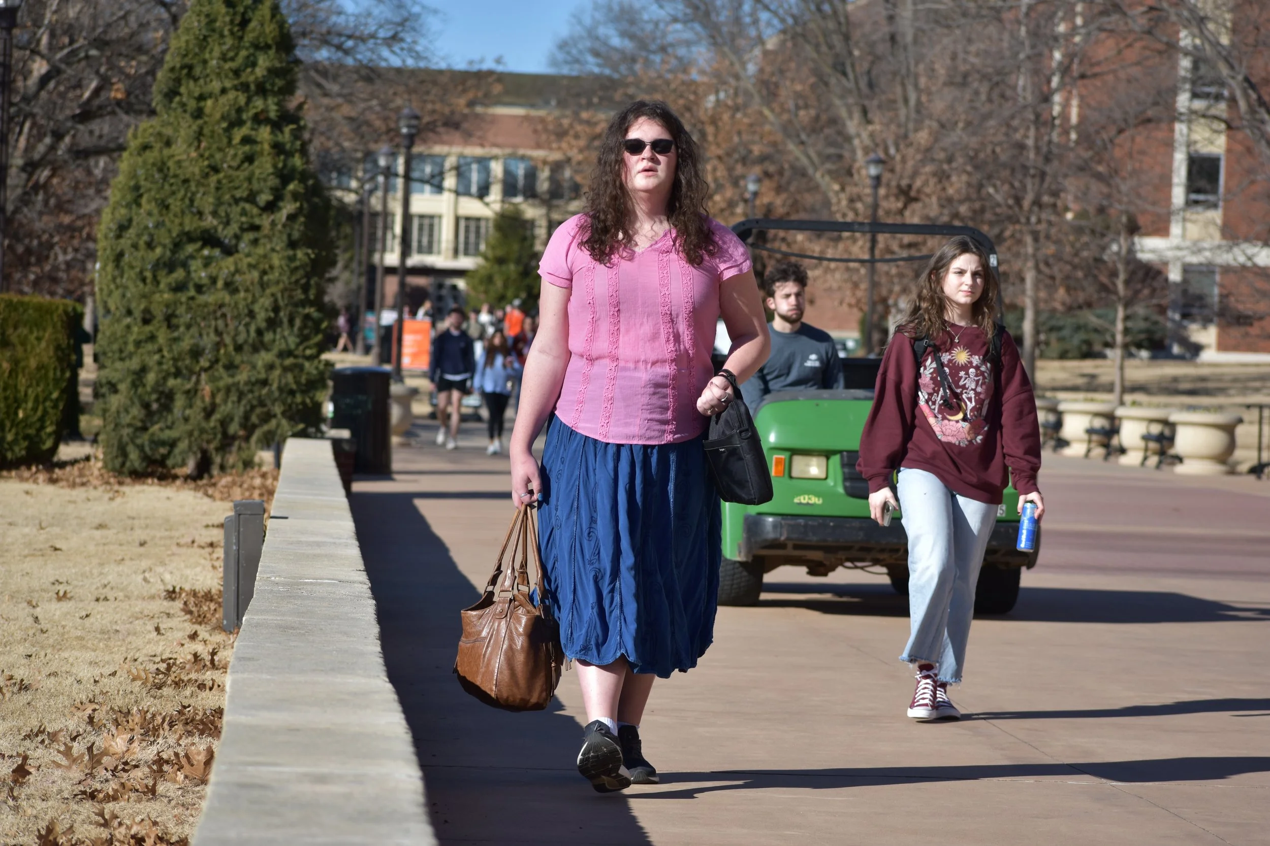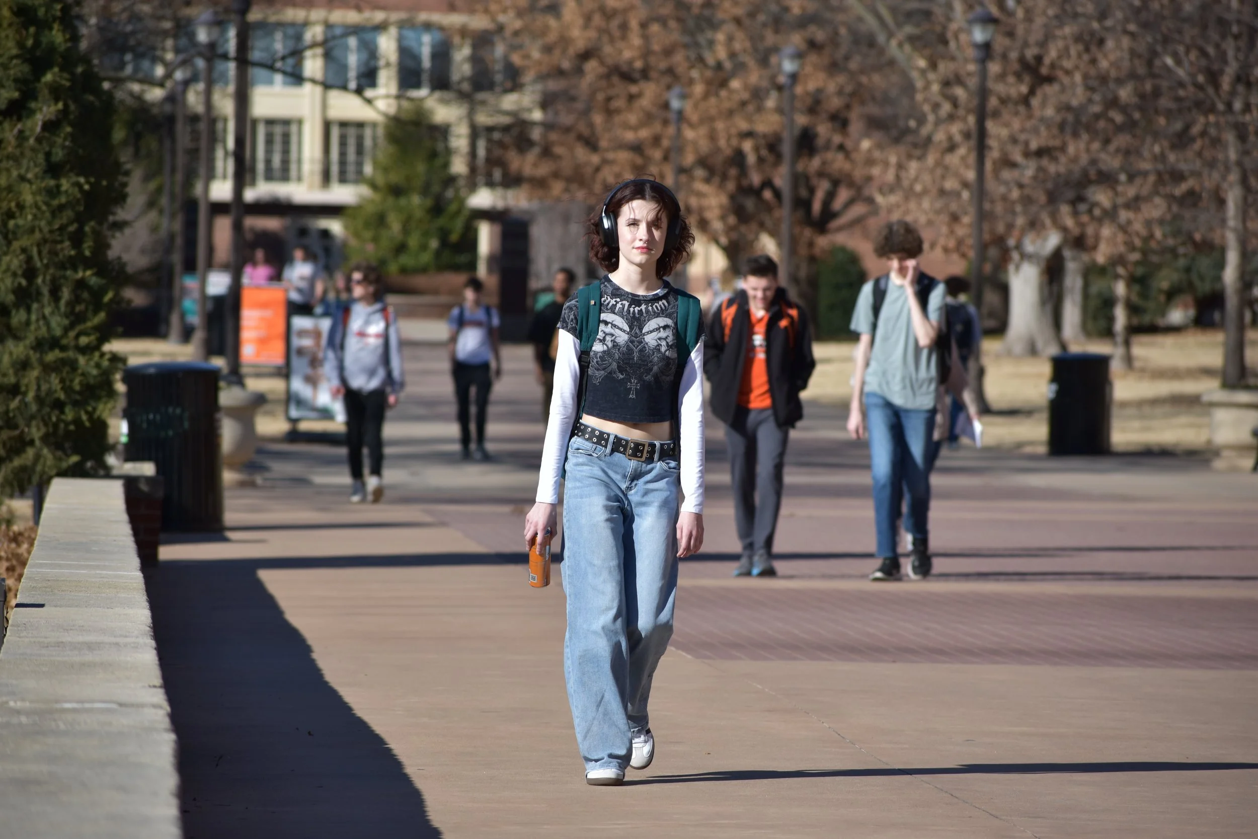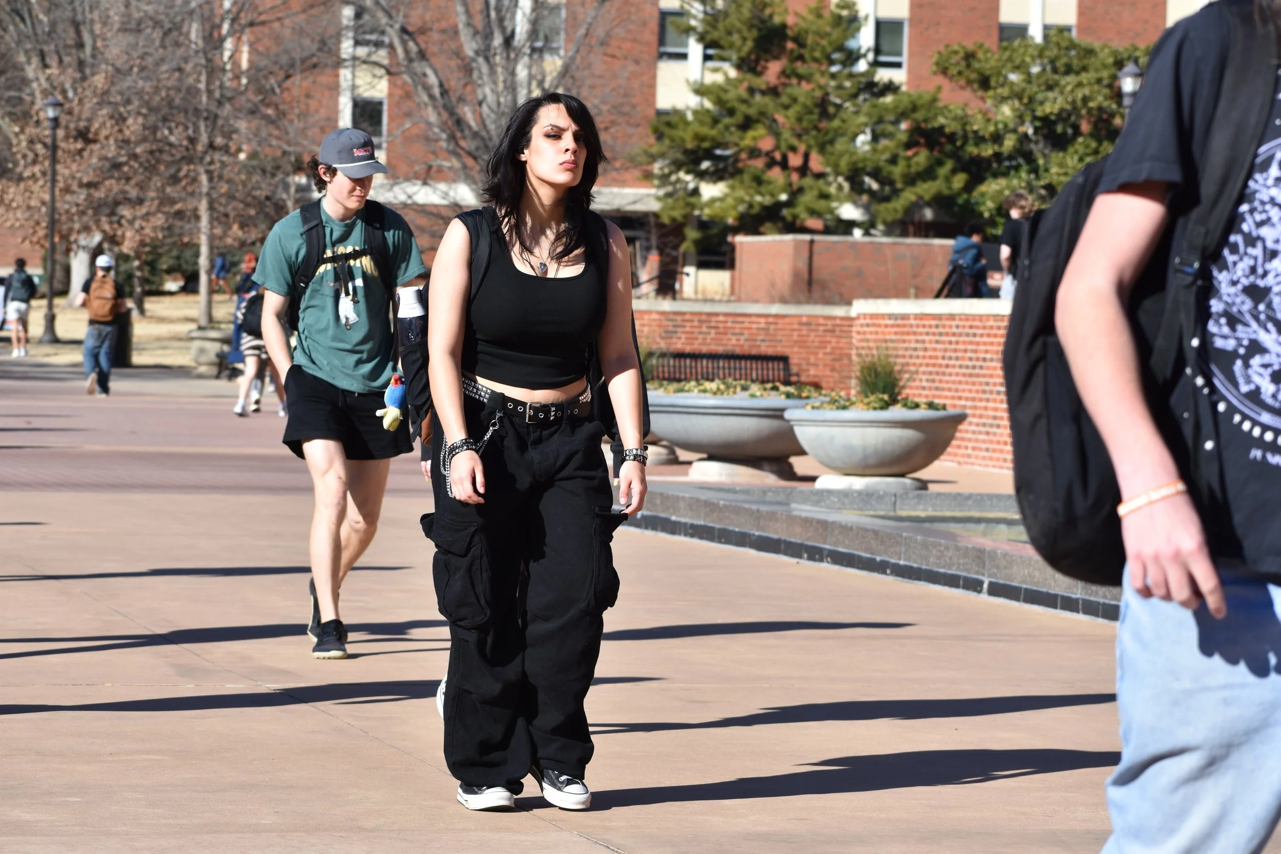 On an uncharacteristically warm day in February, people on the Oklahoma State University campus dressed accordingly— stepping out in shorts or even putting on a tank top, allowing their skin to soak up the sun for the first time in months. Others stuck to their usual uniform, wearing flashy jackets, monochromatic outfits or eye-catching accessories.